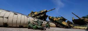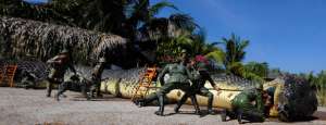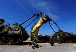 We came across high resolution photographs of the snake on toy truck mentioned above along with some others. They clearly show the soldiers and the truck are toys.