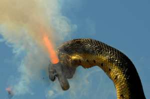 If you watch the low resolution pictures closely, the soldier standing on the truck in one of the pictures is not real, but simply a toy standing on a truck, which is again not real. The truck has a plastic look, unlike the real metallic one. The snake found on top of the toy truck could be a real, but normal-size one placed on toy truck. It could also be a rubber snake model. Subsequently, it is made to look gigantic using close range, tricky photography.